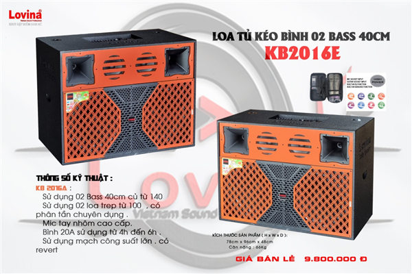 LOA TỦ KÉO BÌNH 02 BASS 40CM-KB2016E Liên hệ Số lượng :
