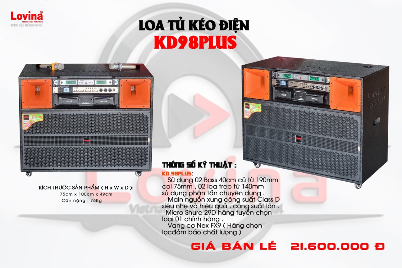 LOA TỦ KÉO ĐIỆN KD98PLUS Liên hệ Số lượng :