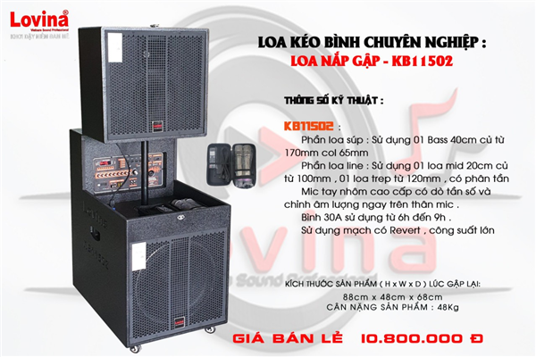 LOA KÉO BÌNH CHUYÊN NGHIỆP-LOA NẮP GẬP KB11502 Liên hệ Số lượng :