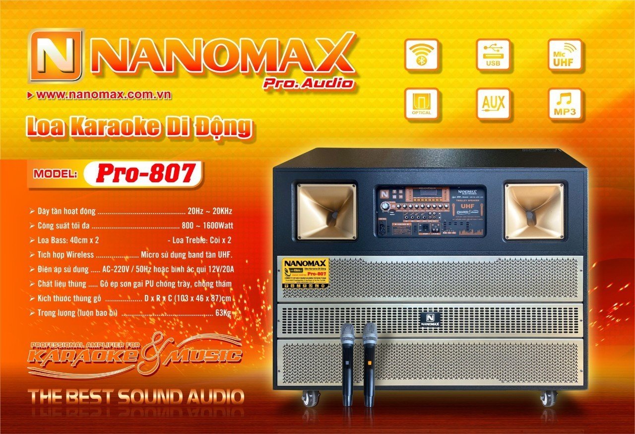 LOA KARAOKE DI ĐỘNG NANOMAX PRO-807 (Bass đôi 40cm x2, 2 Micro) 6,500,000 VNĐ Số lượng :