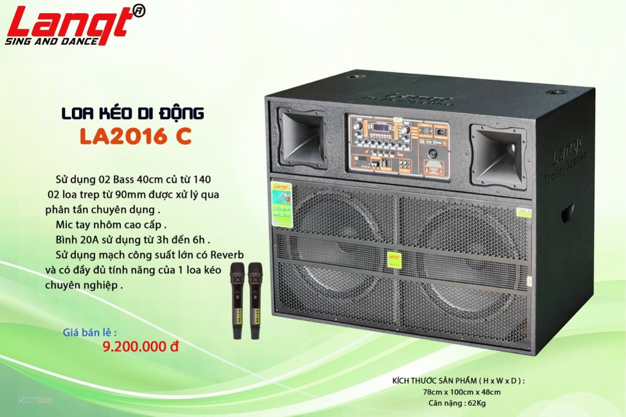LOA KÉO DI ĐỘNG LA2016 C (BASS 40CM x2, 2 MICRO) Liên hệ Số lượng :