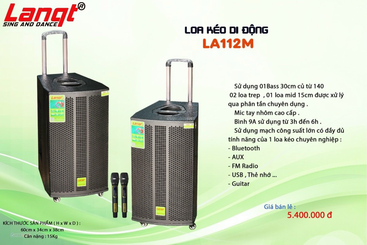 LOA KÉO DI ĐỘNG LA112M (BASS 30CM, 2 MICRO)