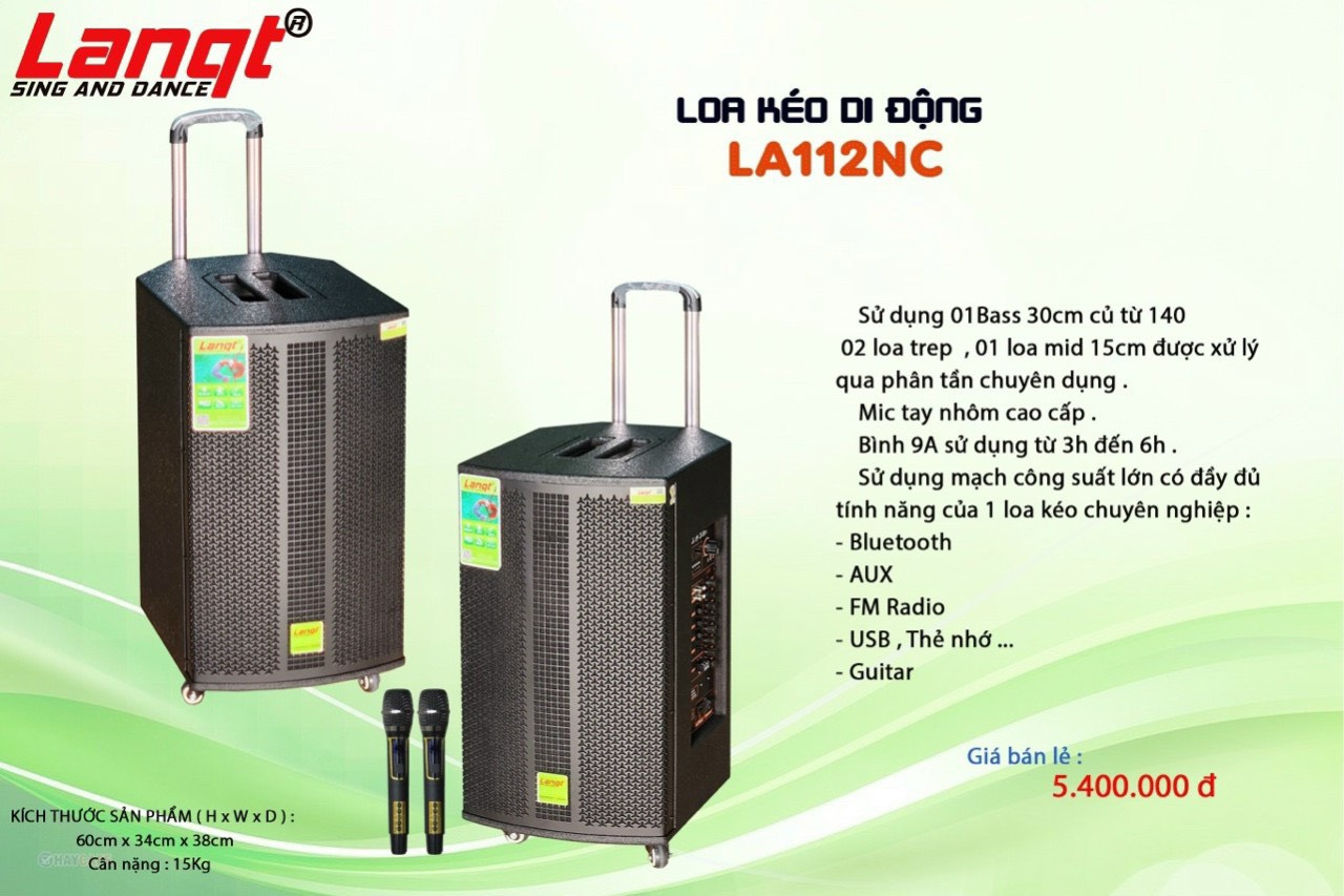 LOA KÉO DI ĐỘNG LA112NC (BASS 30CM, 2 MICRO) Liên hệ Số lượng :