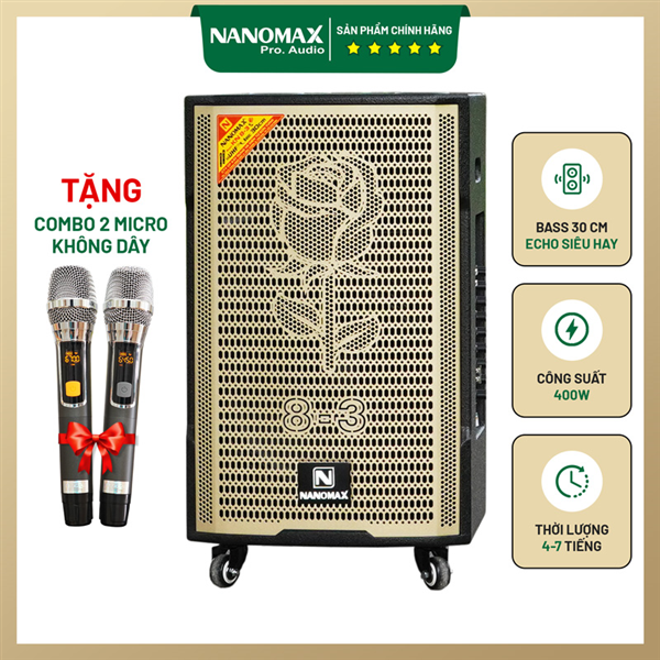 Loa kéo Nanomax KN 8-3 là mẫu loa mới ra mắt dành riêng dịp 8/3 để “cánh mày râu” tặng cho những người phụ nữ của mình. Sở hữu loa Bass 30cm với công suất 400w, Nanomax KN 8-3 phù hợp dùng trong các dịp họp mặt, karaoke gia đình.