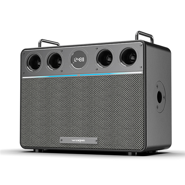 Premium wood case and metal grille,Portable leather and metal handle,Support UHF wireless microphones and remote , Support Live Streaming and Headphone Monitoring