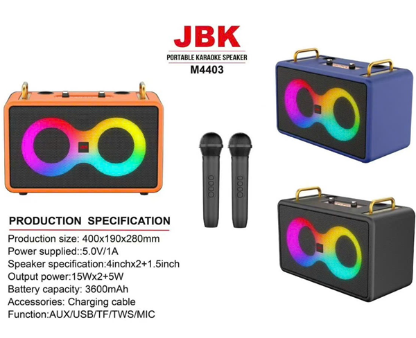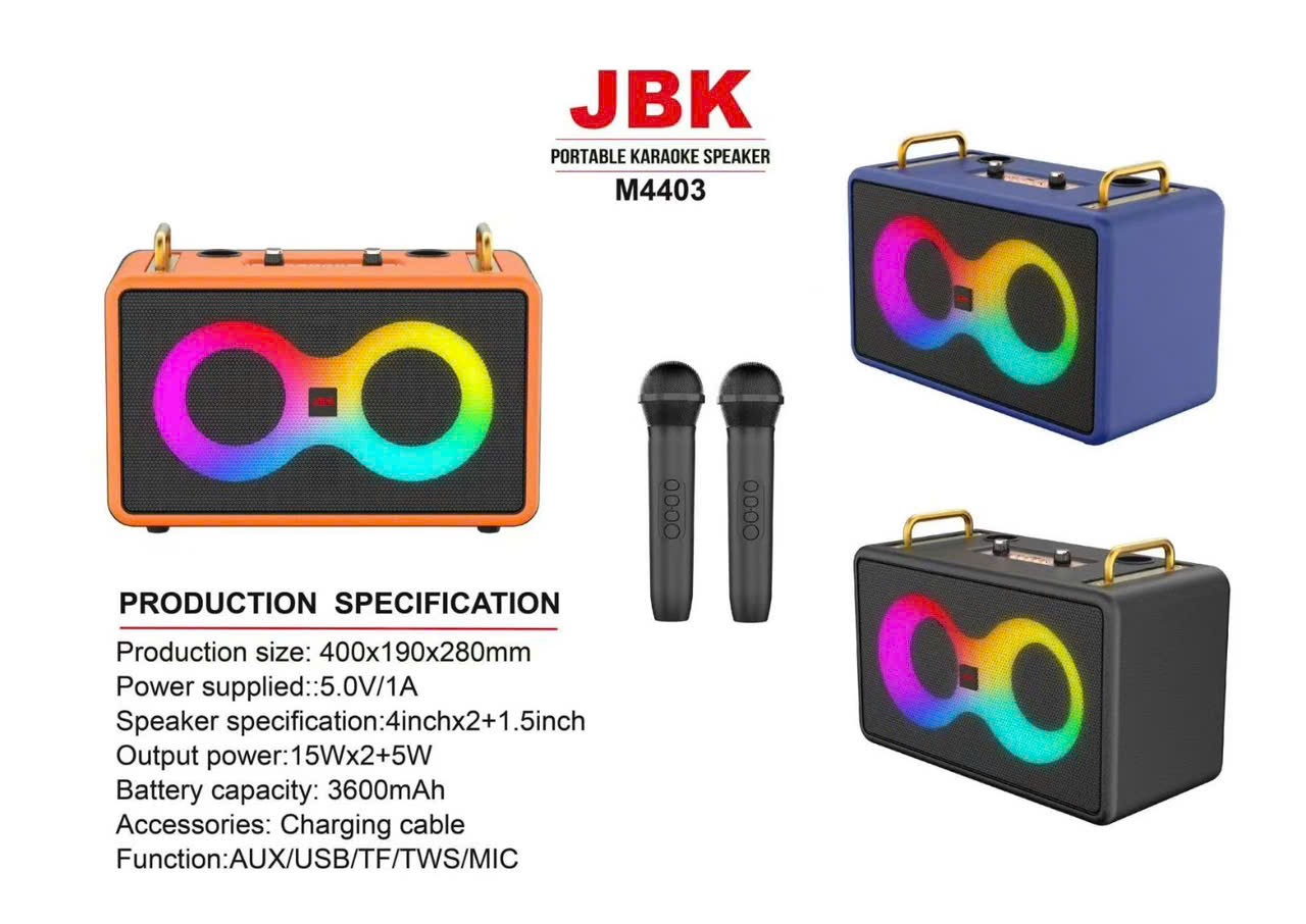 LOA BLUETOOTH JBK M4403 (KÈM 2 MICRO) Liên hệ Số lượng :