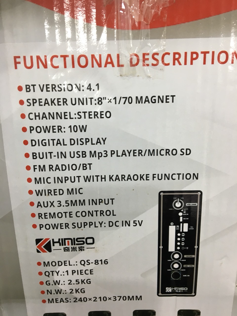 Loa kéo di động KIMISO QS-816 (Bass 8, 1 Mic dây, Nặng 2Kg) Liên hệ Số lượng :