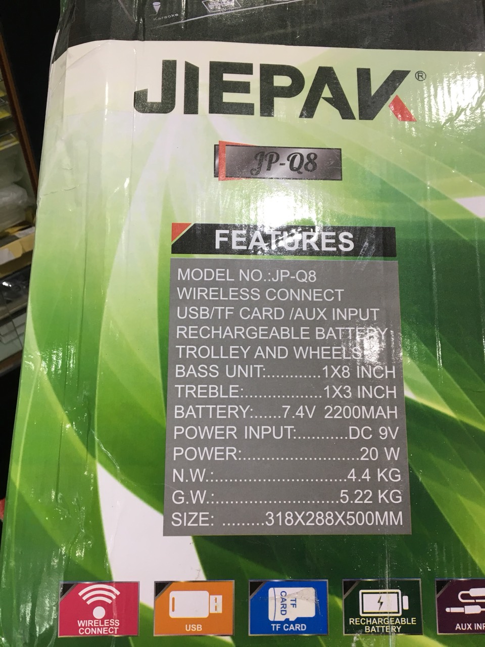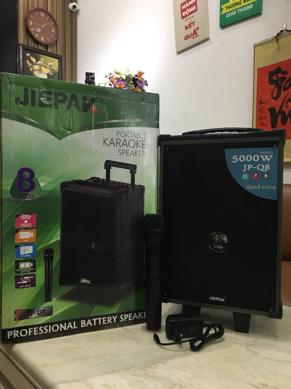 Loa Kéo Di Động JIEPAK JP-Q8 (Bass 8", 1 Mic Ko dây, 5Kg)