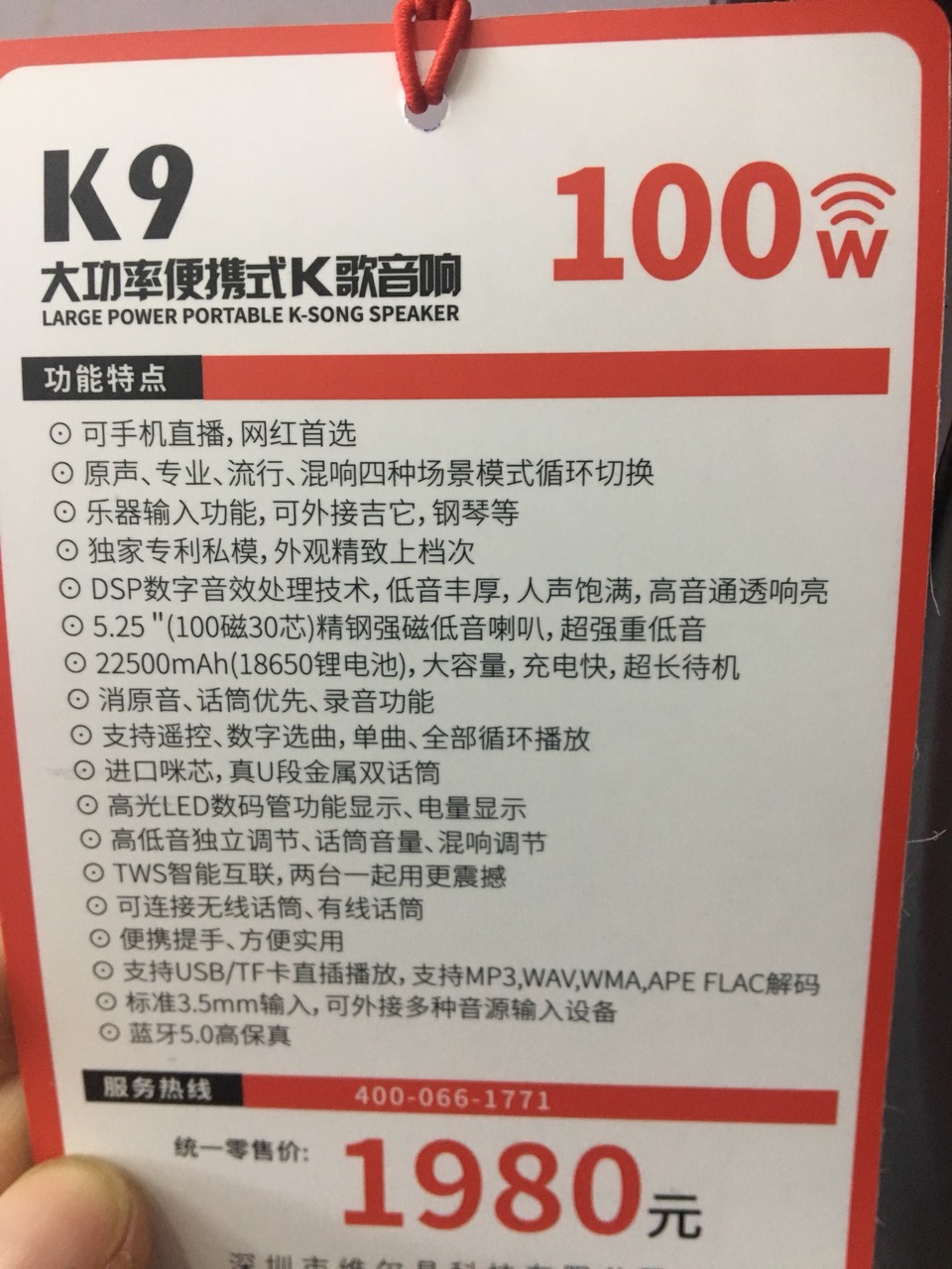 Loa Bluetooth K9 VIMU Brand W-King (Công Suất 100W, 2 Micro, 7.5Kg) 3,650,000 VNĐ Số lượng :