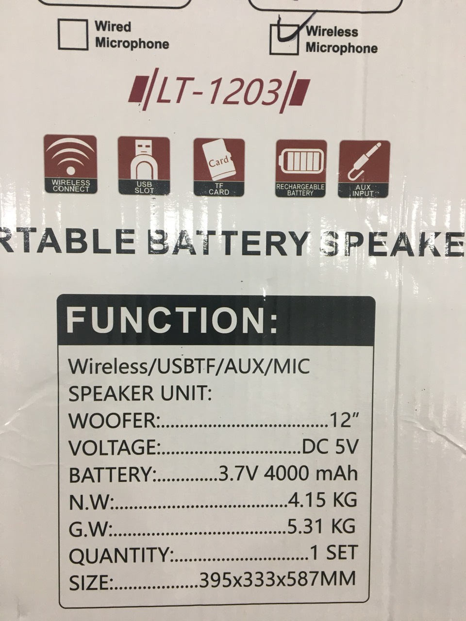 Loa Kéo Di Động LT-1203 Super Bass (Bass 12", 1 Micro, Nặng 4.15Kg)