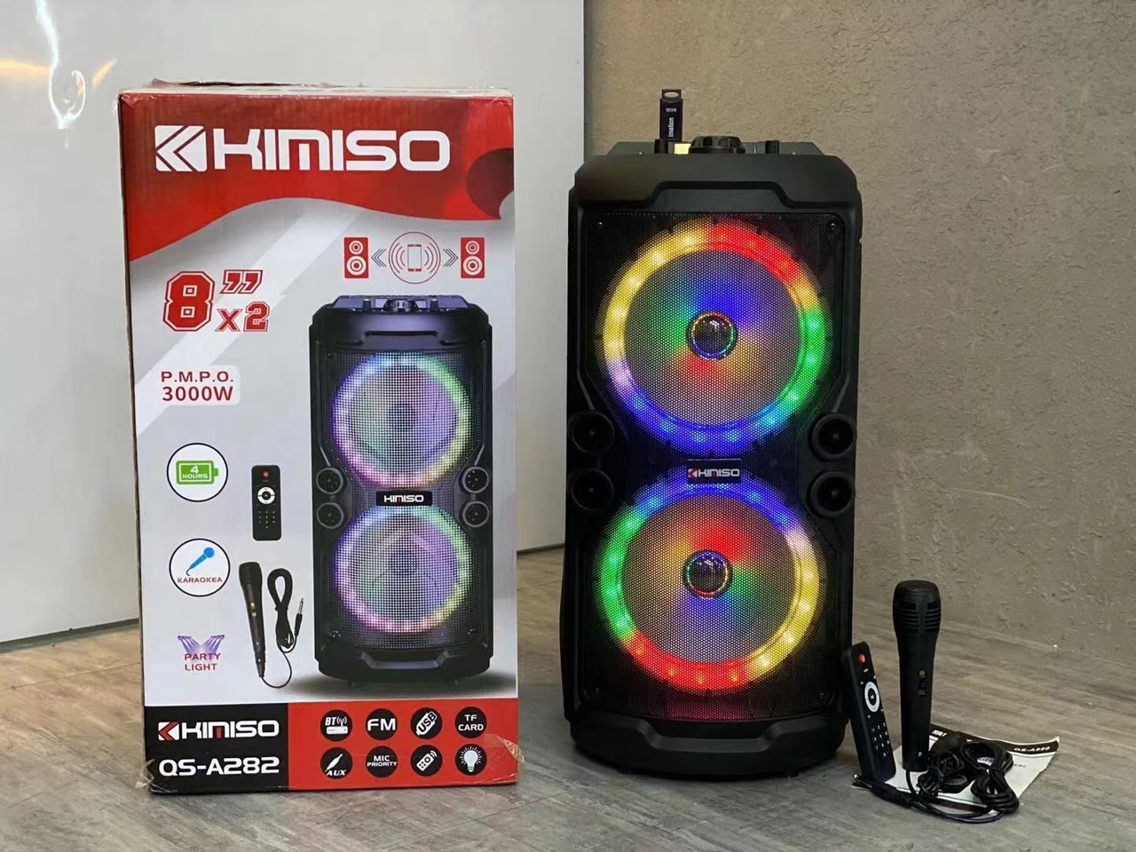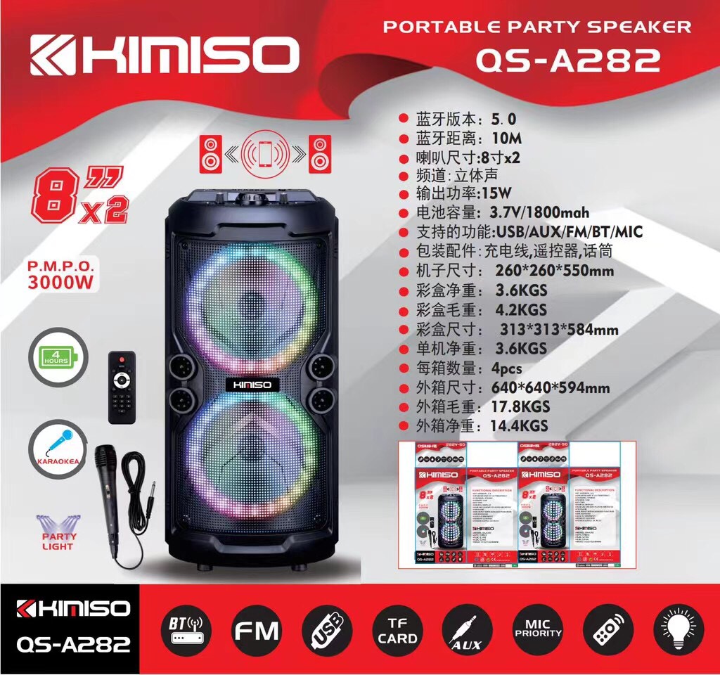 Loa Kéo Di Động KIMISO QS-A282 (Bass đôi 8"x2, 1 Micro có dây)