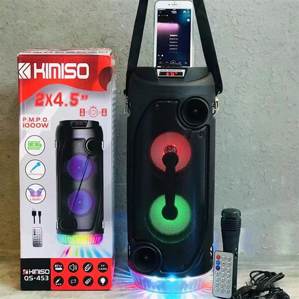 Loa Bluetooth Karaoke KIMISO QS-453 (Bass đôi 4.5"x2, 1 Micro có dây)