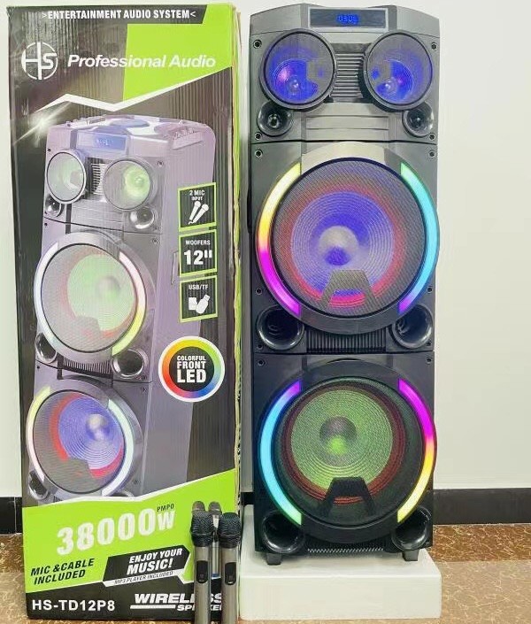 Loa Di Động Karaoke HS-TD12P8 (Bass đôi 12"x2, 2 Micro không dây)