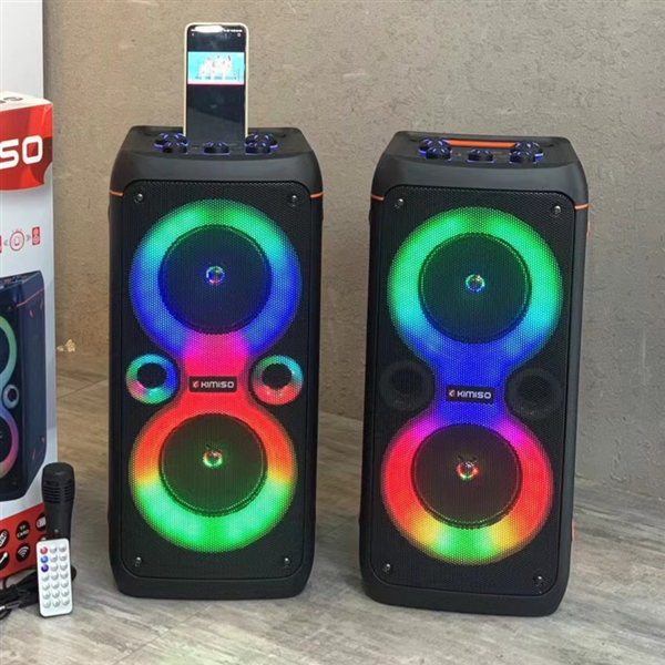 Loa Di Động Karaoke KIMISO QS-7603 (Bass đôi 6.5"x2, 1 Micro có dây)