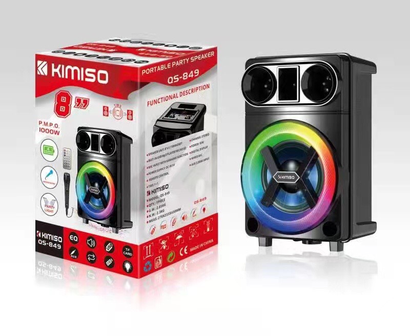 Loa Kéo Di Động Karaoke KIMISO QS-849 (Bass 8", 1 Micro có dây)