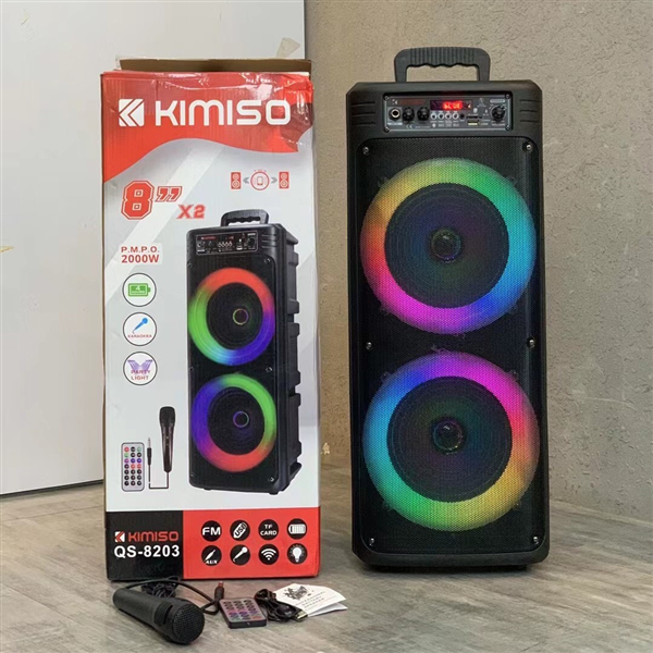 Loa Kéo Di Động Karaoke KIMISO QS-8203 (Bass đôi 8"x2, 1 Micro có dây)
