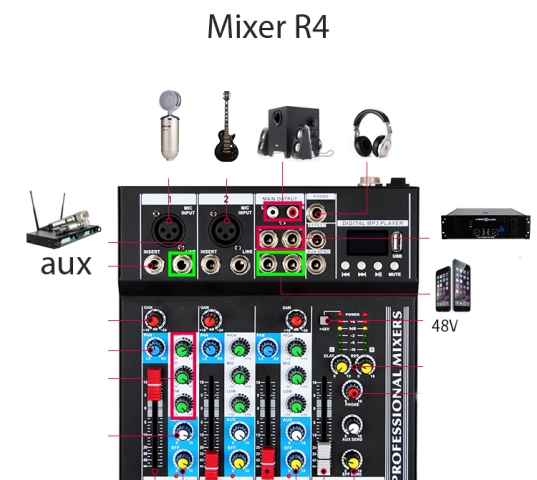 Mixer R4 USB-4 Kênh Mixing Console Thiết Bị Âm Thanh Chuyên Nghiệp DJ