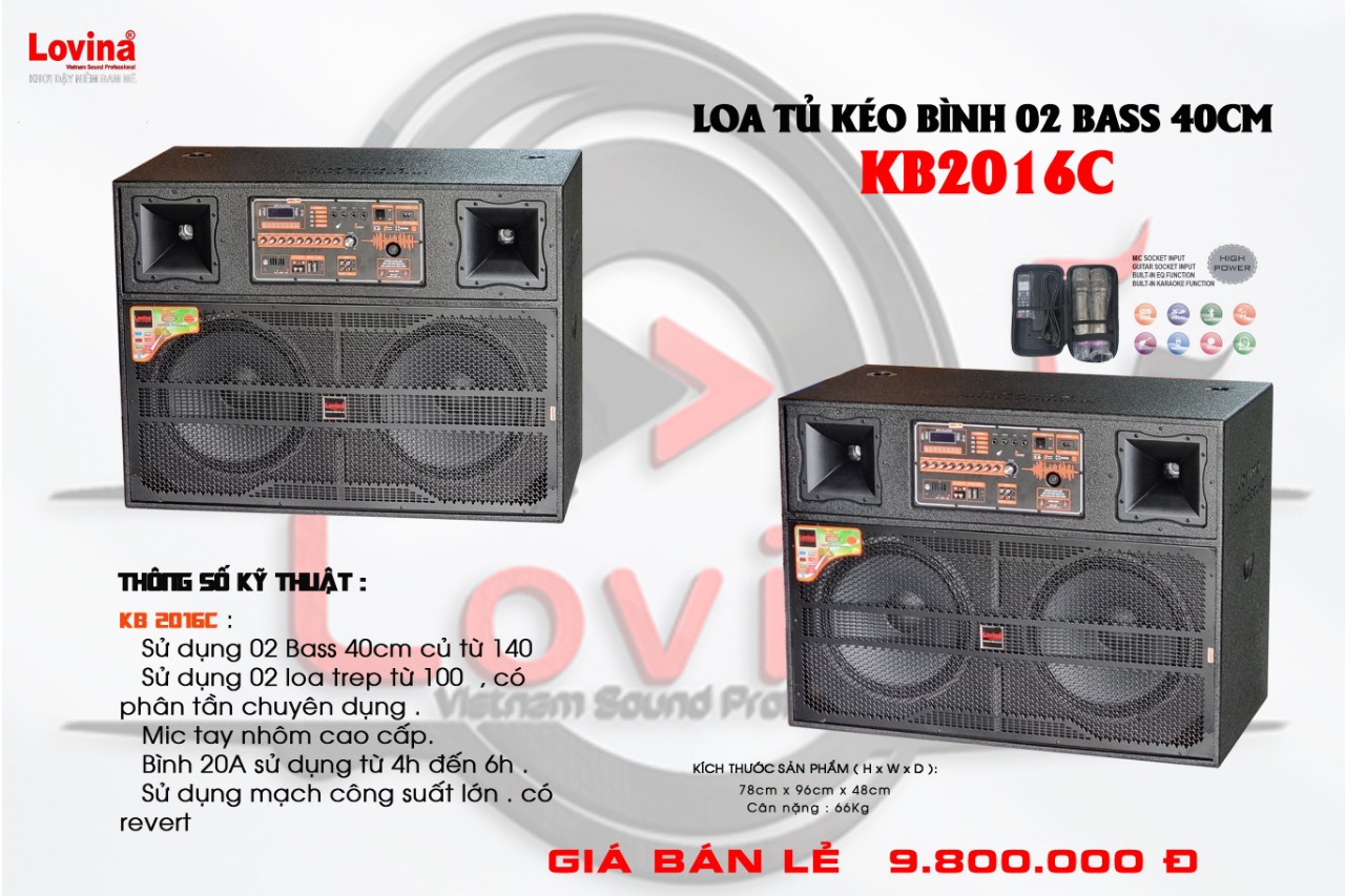 LOA TỦ KÉO BÌNH 02 BASS 40CM-KB2016C