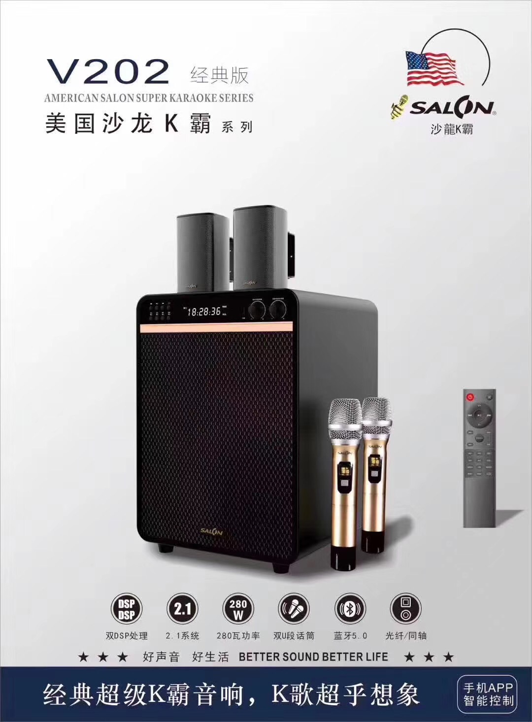 Loa Vi Tính 2.1 Bluetooth Karaoke SALON V202 (280W, 2 Micro Không Dây)