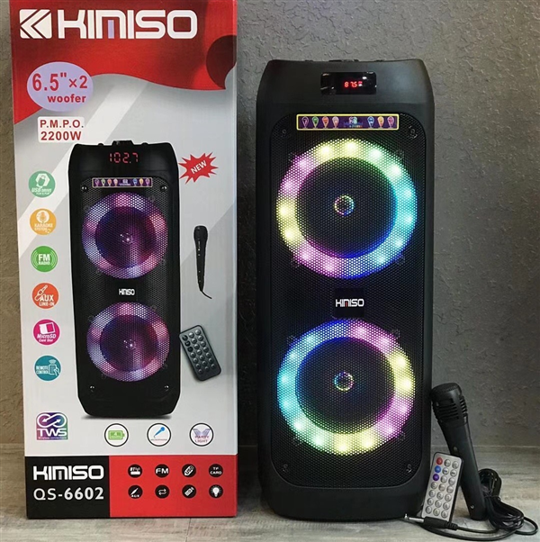 Loa Di Động Karaoke KIMISO QS-6602 (Bass đôi 6.5" x2, 1 Micro có dây)
