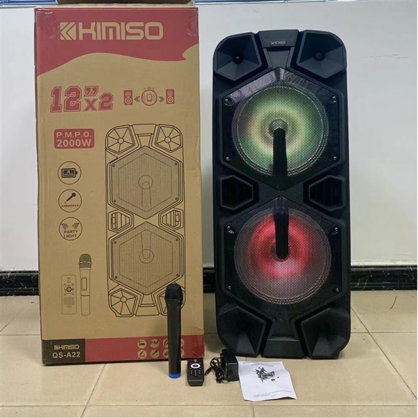 Loa Bluetooth Karaoke KIMISO QS-A22 (Bass đôi 12"x2, 1 Micro không dây)