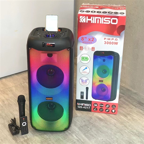 Loa Di Động Karaoke KIMISO QS-4217 (Bass đôi 8"x2, 1 Micro không dây)
