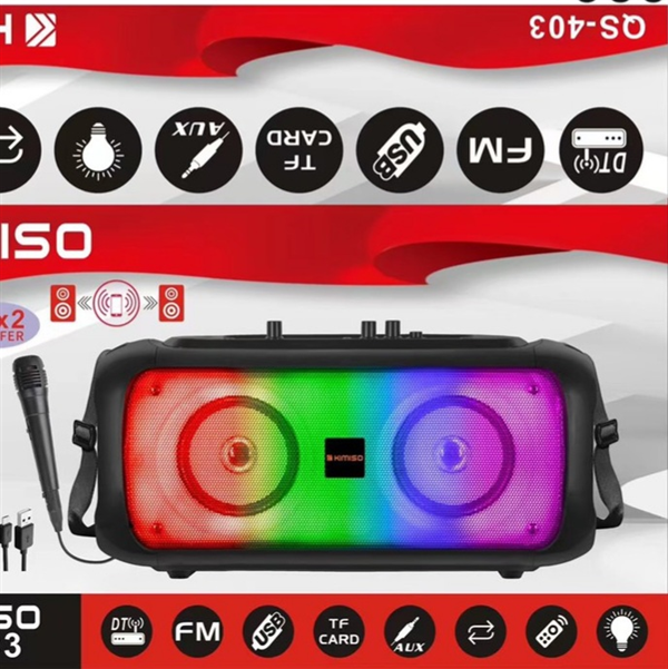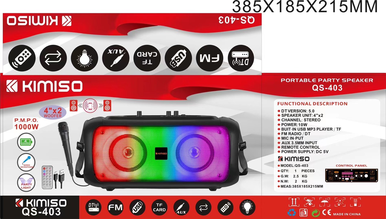 Loa Di Động Karaoke KIMISO QS-403 (Bass đôi 4"x2, 1 Micro có dây)