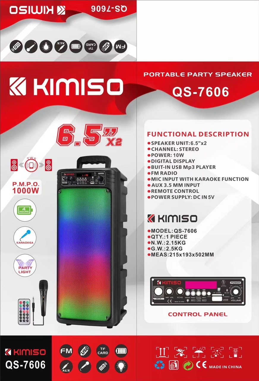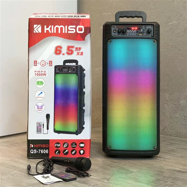 Loa Kéo Di Động Karaoke KIMISO QS-7606 (Bass đôi 6.5"x2, 1 Micro có dây)
