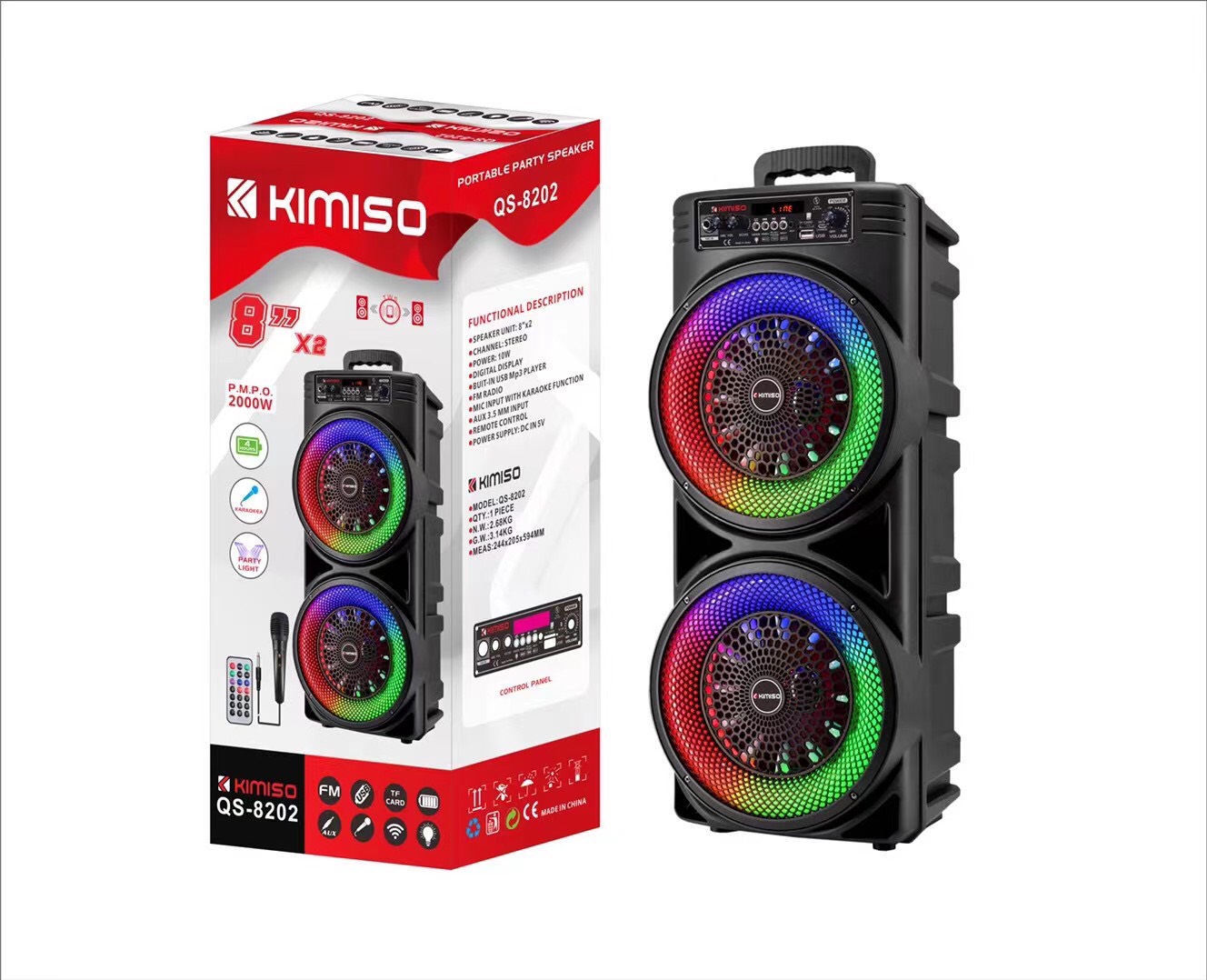 Loa Bluetooth Karaoke KIMISO QS-8202 (Bass 8"x2, 1 Micro có dây)