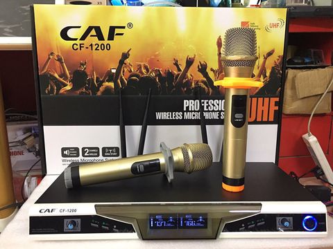- Micro CAF CF-1200 so với các dòng micro khác : Với 4 râu sóng khỏe - bắt xa, không có hiện tượng sóng chập chờn, mất sóng, bắt xa lên tới 20 - 30 mét. micro karaoke caf cf-1200 có tích hợp chông hú nên sẽ không gây hú cho dàn karaoke, amply nhà bạn, giúp bạn có những phút giây vui vẻ bên gia đình, bạn bè Thân micro được cấu tạo từ kim loại và sơn phủ bằng sơn tĩnh điện, micro cần chắc tay, không gây nặng và mỏi tay khi cầm lâu Đầu thu Micro CAF CF1200 được thiết kế trông bắt mắt, sang trọng, bảng hiển thị sóng rõ ràng